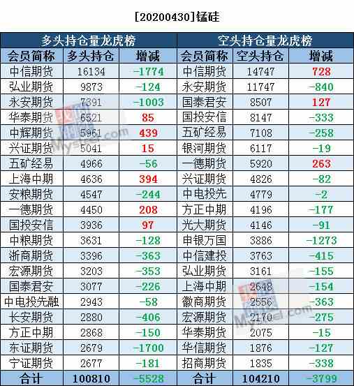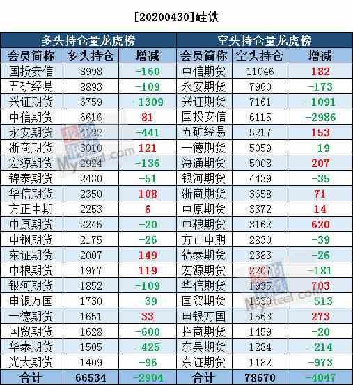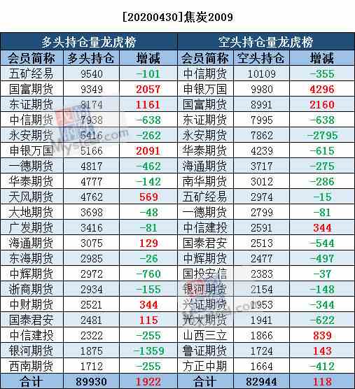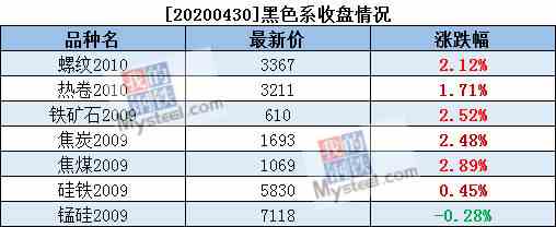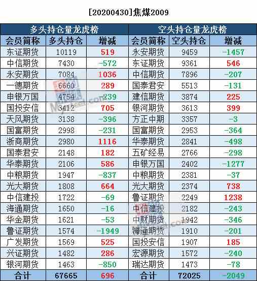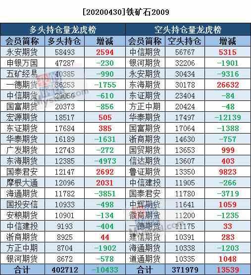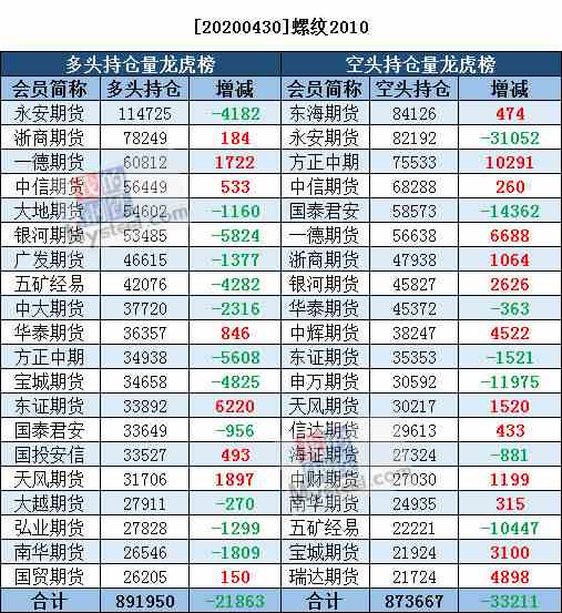 4月30日黑色系持仓日报