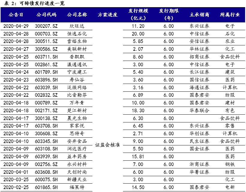 | 来源:债市覃谈 “等待与验证”将成为市场5月的关键词。五一假期间,海外市场剧烈波动,对A股在5月份的第一个交易日造成负面冲击。进入5月份后,市场可能进入“等待与验证”的过程。一方面需等待5月中下旬两会释放出的政策信号,另一方面则是通过高频数据验证二季度后经济恢复状况如何。不过从4月份的PMI数据和部分公司二季度业绩预告来看,宏观经济和企业盈利仍然承压明显。往后看,市场主导因素上,在持续宽裕的流动性环境下,投资者对于经济恢复预期的变化将成为决定市场运行方向的关键变量。 对于场外资金而言,转债市场出现了2个积极信号。1)市场低价券开始增多,120元以下个券占比达到64%,110元以下个券占比达到28%。低价券增多后,转债性价比会有所提升,投资机会也会悄然而至;2)前期调整过后的科技、新能源汽车板块出现止跌信号。部分标的调整过后重新迎来布局机会,资金有避高就低的需求。 投资策略:随着中低价券的增多,转债性价比逐渐回归,投资思路上可以沿着正股思维和转债思维两条路径挖掘标的。1)正股思维:行业龙头和前期超跌的科技、新能源汽车。a)行业龙头:明阳、顺丰、欧派、东财转2;b)科技:利德、木森、联创、烽火、中天、亨通;c)新能源汽车:璞泰、恩捷、先导、赣锋、常汽、新泉、远东;2)转债思维:110元左右,30%转股溢价率左右的高性价比转债:盛屯、利群、奥佳、淮矿、海亮、鸿达、森特等。 正文 转债投资观点:5月进入验证期,重视转债性价比 “等待与验证”将成为市场5月的关键词。五一假期间,海外市场并不太平,欧洲股市大幅下挫,美国股市出现大幅波动,A股在5月份第一个交易日将会受到来自海外市场情绪的扰动。进入5月份后,市场的投资主线依然围绕着疫情展开,一方面需等待5月中下旬两会释放出的政策信号,另一方面通过高频数据验证二季度后经济恢复状况如何。因此,5月份可能成为市场选择方向的一个时间窗口,投资者需等待投资环境的进一步清晰。 从经济数据和企业盈利层面来看,二季度仍有较大压力。宏观层面,4月PMI环比回落,经济企稳可能尚需时日。微观层面,2020年一季报发布完毕,个别企业同时公布了上半年盈利预测。存量转债中,从已经公布的企业来看,大多预期较为悲观,二季度盈利继续下滑的概率较大,上半年整体承压明显。 ![]() 市场主导因素上,投资者对于经济恢复预期的变化边际效用更强。当前市场下,流动性持续宽裕已成共识,近期市场的反弹也主要来源于充裕流动性下的资金涌入。往后看,除非出现大规模刺激政策,否则流动性想再进一步宽松的边际效用正在递减。而经济恢复节奏及企业盈利层面,市场仍处在验证期,一致预期尚未形成,随着月度数据的逐步公布将不断修正市场的预期,因此边际影响更大。 不过,对于场外资金而言,当前转债市场呈现出2个比较好的信号。 1)市场低价券开始增多,120元以下个券占比达到64%。转债价格作为最重要的参考指标之一,往往是决定投资者是否大规模加仓最核心的判断。当前120以下个券占比达到64%,110元以下个券占比达到28%,投资价值正在逐步显现。当然,目前的这个比例仍然不具备很强的吸引力,但如果价格中枢进一步下移,可能会吸引到更多投资者入场。我们给出一个经验值的判断,当市场80%的个券绝对价格低于120元,50%个券绝对价格低于110元时,转债市场的投资价值将大幅凸显。 ![]() 2)前期调整过后的科技、新能源汽车板块出现止跌信号。1~2月份表现强势的科技和新能源汽车板块从3月份开始进入调整阶段,经过3月份的调整基本回到前期低点。自4月份以来,前期强势板块走出震荡筑底行情,逐渐平稳,尽管有多家公司一季报不及预期,但整体指数没有继续下探,出现止跌信号。这说明业绩上的利空已经反映在前期的调整中,同时部分标的调整过后重新迎来布局机会,资金有避高就低的需求。 ![]() ![]() 市场的风险偏好修复是一个过程,触发因素可能是疫情缓解,也可能是经济数据转好。不过对于转债而言,当好价格出现时,就可以更加乐观一些,尤其在当前低利率的环境下,转债的配置需求始终旺盛,当前可以逐步将重心切换至中低价的高性价比个券上。 投资策略:随着中低价券的增多,转债性价比逐渐回归,投资思路上可以沿着正股思维和转债思维两条路径挖掘标的。1)正股思维:行业龙头和前期超跌的科技、新能源汽车。a)行业龙头:明阳、顺丰、欧派、东财转2;b)科技:利德、木森、联创、烽火、中天、亨通;c)新能源汽车:璞泰、恩捷、先导、赣锋、常汽、新泉、远东;2)转债思维:110元左右,30%转股溢价率左右的高性价比转债:盛屯、利群、奥佳、淮矿、海亮、鸿达、森特等。 成交量上升,走势强于正股 正股市场:重拾升势。上周,上证指数上涨1.84%,收于2860.08点。创业板指上涨3.28%,收于2069.43点。 分行业来看,行业板块涨跌不一。其中电子、银行和非银涨幅最大,分别为7.19%、4.69%和4.02%;,纺服、农林牧渔和医药跌幅最大,分别为-4.03%、-2.41%、-1.44%。 ![]() ![]() 转债市场:成交量上升,走势强于正股。转债市场上周成交额1345.69亿元。指数方面,上周转债指数上涨0.93%,沪深300上涨3.04%。 上周换手率有所上升,其中换手率较高的券为凯龙转债、晶瑞转债、横河转债,换手率分别为6352%、5747%、4752%。 上周共有148只转债强于正股:其中转债涨的同时正股下跌的