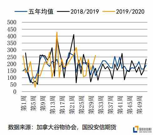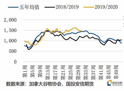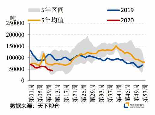 | 全球植物油市场均在受到消费预期下滑困扰。海外疫情仍将困扰市场对全球植物油消费的预估,截至3月16日累计确诊88732例,现有确诊75491例。当前国际市场植物油消费低迷的预估,正如春节后国内开市的油脂消费预估,较为确定的是已损失的消费不能靠后续报复性消费弥补,因此在海外疫情未见拐点前海外植物油价格的弱势仍将直接影响国内植物油价格。 国内菜油仍处于小幅累库阶段。截至3月13日,我国国内菜油库存总计约37.4万吨(+0.6),连续四周累库。其中,华东27万吨(+0.81)、沿海4.4万吨(-0.2)、长江沿线6万吨(-0.01),华东仍是主要累库区域。除此外,豆油库存为139.21万吨(-0.75),棕榈油库存84.66万吨(-5.16),我们可以看到在过去的一周豆油与棕榈油均在降库存,其中棕榈油最为显著。 菜系板块内仍将持续粕强油弱。国内菜籽开机率上升,上周为21%,较前一周增长6个百分点,上周菜粕库存上升至1.6万吨。颗粒粕库存降至18.67万吨,较前一周下滑2.81万吨。菜粕即将进入水产饲料消费旺季,考虑到近年来水产饲料消费较为稳定,菜粕价格出现巨幅回落的风险较小。但因国内进口菜粕的库存对价格构成小幅压力,且豆菜粕价差表明菜粕价格的不经济性,因而消费端也存在替代消费的担忧,预计中期价格在当前价格上下波动8%的范围内。 策略上,维持上周周报观点菜油偏空。菜油与豆棕之间价差仍处于高位,原因是中加菜系贸易迟迟未恢复正常,短期仍未看到缓解的迹象。但在油脂需求预期偏弱与原油市场波动的共同影响下,菜油价格的下方边界可能距今8-12%。 第一部分 行情概览 一、期货行情 ![]() 数据来源:Wind 图1:菜粕5-9价差 ![]() ![]() 图2:菜粕9-1价差 ![]() ![]() 图3:菜油5-9价差 ![]() ![]() 图4:菜油9-1价差 ![]() ![]() 二、现货涨跌 ![]() 数据来源:天下粮仓 注:1、菜粕:广东贴水50元/吨或平水,广西贴水100元/吨,福建厦门平水。2、菜油:广东贴水240元/吨,福建贴水220元/吨,广西贴水200元/吨,四川升水200元/吨。 三、基差 图5:菜粕(广东)基差 ![]() 图6:菜油(广西)基差 ![]() 四、进口利润 图7:进口菜籽压榨盘面毛利(未扣加工费) ![]() 图8:进口加菜油盘面毛利 ![]() 五、跨品种价差 图9:豆菜粕单位蛋白价差(广东) ![]() 图10:豆菜粕期货主力价差与现货(广东)价差 ![]() 图11:菜豆油期货主力价差与现货(广东)价差 ![]() 注:菜豆油现货价差为四级菜油-一级豆油 第二部分 加拿大菜籽基本面 图12:加拿大菜籽周度出口量(千吨) ![]() 图13:加拿大菜籽累计出口量(千吨) ![]() 图14:加拿大菜籽周度商业库存(千吨) ![]() 图15:加拿大周度农场交售量(千吨) ![]() 第三部分 国内菜系基本面 一、菜籽到港量、库存与压榨 图16:预估菜籽到港量(万吨) ![]() 图17:沿海菜籽库存与开机率 ![]() 二、菜粕基本面 图18:菜粕周度提货量 ![]() 图19:菜粕进口 ![]() 图20:菜粕沿海库存 ![]() 图21:菜粕沿海库存水平(分省) ![]() 三、菜油基本面 图22:菜油周度提货量 ![]() 图23:菜油进口 ![]() 图24:菜油全国库存(华东+沿海+长江流域(除四川)) ![]() 图25:菜油库存分布 ![]() 图26:菜油华东库存 ![]() 图27:菜油沿海库存 ![]() 国投安信期货 董甜甜 新浪声明:新浪网登载此文出于传递更多信息之目的,并不意味着赞同其观点或证实其描述。文章内容仅供参考,不构成投资建议。投资者据此操作,风险自担。责任编辑:宋鹏 |