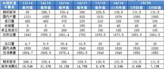 | 研究结论 白糖19/20年度供应短缺,因为疫情的原因,原油价格暴跌,消费减少,供应缺口有所减少;同时20/21年度再度出现供应过剩。 首先:中国白糖需求大于产量,长期需要靠进口弥补缺口,缺口大概一直维持在1/3。由于国内价格远高于国外,目前现货价格偏高,外盘价格暴跌,进口优势明显。 其次:2020年2月底,19/20年度本期制糖全国累计产糖882.54万吨;全国累计销糖401.72万吨;销糖率45.52%(去年同期45.81%)。 第三:国内外价差在85%征税情况下,配额外进口糖价格在4580元/吨附近,疫情封锁走私减少。 第四:发改委关于进口配额外加税政策,三年依次递减,45%、40%、35%配额外进口总税率95%、90%、85%。目前已经第三年85%这个阶段。2020年5月到期。未来政策不确定,如果取消,国内价格将大幅度下跌,如果延续可能会引起新一轮贸易冲突。政策走向是前半年比较关键的不确定因素之一。 第五:主产区新糖大量上市,新糖报价目前在5690附近。 综合以上观点,白糖中长期基本面从偏多转为偏多减少。疫情打乱供需平衡,由于原油价格暴跌,巴西糖制乙醇比例下降,白糖产量大幅增加,白糖供应从紧缺转为供应宽松。原糖价格再度到达10美分附近,国内近月受现货价格坚挺影响偏强,远月跟随下跌。5月到期的征税政策不明朗,09主力合约震荡略偏空运行。 一、行情回顾 2020年开端,全球受新冠疫情影响,各地封锁,经济冻结。证券及商品市场价格暴跌。白糖作为民生物资,总体受影响较轻。国内外走势不同步,主要是因为外围市场白糖从供应短缺,未来转为供应过剩。这是因为原油价格暴跌,巴西糖制乙醇比例减少,白糖供应增加。同时疫情消费减少。外围原糖价格暴跌,国内相对抗跌,主要是国内白糖本身就是有供应缺口,需要进口弥补,而受限配额,配额外征税等因素,正规渠道进口偏少,而疫情导致边界控制严格,走私减少,国内白糖现货价格相对坚挺。主力合约换月09,因为5月份的征税政策不明确,加上外围市场大跌,远月合约相对偏弱。 图1:ICE11号原糖指数和郑糖指数周线对比图 ![]() 资料来源:文华财经 各机构预测: 联合国粮农组织:19/20年度全球糖供应料短缺240万吨。 摩根大通:19/20榨季全球食糖供应缺口640万吨。 F.O Licht:预计19/20榨季全球食糖供应缺口从420万吨增加到550万吨。 IOS:19/20年度全球糖缺口预计达612万吨。 福四通:19/20全球糖缺口预估从570万吨上调至590万吨。 DATAGRO:19/20年度全球糖市供需缺口预估调升至642万吨,5月预估为234万吨。 Green Pool:预计20/21榨季全球食糖供应过剩30万吨。 Rabobank:19/20榨季全球食糖供应缺口削减至670万吨。巴西新榨季制糖比或提高至46%,糖出口恐增加1000万吨。 图2:usda全球供需平衡表 ![]() ![]() ![]() ![]() 资料来源:布瑞克 二、供需分析 1、国内白糖产量小幅减少 国内白糖产量从15/16年度开始,近四年产量逐步增长,2017/18年度恢复至1000万吨以上。国内供需变化不大,国内缺口还有500万吨左右,200万吨配额,主要是走私的影响。疫情封锁,走私下降明显,国内供应压力减弱。 图3:布瑞克国内供需平衡表 ![]() 资料来源:布瑞克 图4:国内供需平衡表(天下粮仓和农村部) ![]() ![]() ![]() 资料来源:农业部 2、进口食糖同比增加 海关总署公布的数据显示,2020年1-2月中国进口食糖32万吨,同比增加18万吨。 2019/20榨季截至2月底我国累计进口糖131万吨,同比增加32万吨。 图5:白糖月度进口量 ![]() 资料来源:大越期货整理 3、国内销售数据 2019/20年制糖期全国制糖生产情况。 截至2月底,本制糖期全国已累计产糖882.万吨(上制糖期同期产糖737.72万吨),其中,产甘蔗糖743.26万吨(上制糖期同期产甘蔗糖607.88万吨);产甜菜糖139.28万吨(上制糖期同期产甜菜糖129.84万吨)。 截至2月底,本制糖期全国累计销售食糖401.72万吨(上制糖期同期337.98万吨),累计销糖率45.52%(上制糖期同期45.81%),其中,销售甘蔗糖320.02万吨(上制糖期同期260.09万吨),销糖率43.06%(上制糖期同期42.79%);销售甜菜糖81.7万吨(上制糖期同期77.89万吨),销糖率58.66%(上制糖期同期61.9%) 图6:我国食糖产销进度汇总 ![]() 资料来源:大越期货整理 图7:白糖产销率 ![]() ![]() 资料来源:大越期货整理 三、价差分析 1、白糖期现价差 近期白糖现货价格小幅回落。期货价格回落较深,期现价差维持在300元每吨左右。 图8:国内白糖主产区现货价格走势 ![]() 资料来源:天下粮仓 2、巴西泰国糖和期货主力价差 在85%征税情况下,目前进口价格比国内现货价格低1100元每吨左右。近期主要是国内白糖价格坚挺,原糖价格大幅下跌。 图9、10:进口糖价格走势图 ![]() ![]() 资料来源:大越期货整理 四、技术面分析 ![]() 白糖短期可能继续回落,疫情拐头之前,难有大涨行情。但下跌空间可能有限,短线偏空思路,中线关注下方低点支撑。 五、对白糖未来价格的预判 白糖19/20年度供应短缺,因为疫情的原因,原油价格暴跌,消费减少,供应缺口有所减少;同时20/21年度再度出现供应过剩。 首先:中国白糖需求大于产量,长期需要靠进口弥补缺口,缺口大概一直维持在1/3。由于国内价格远高于国外,目前现货价格偏高,外盘价格暴跌,进口优势明显。 其次:2020年2月底,19/20年度本期制糖全国累计产糖882.54万吨;全国累计销糖401.72万吨;销糖率45.52%(去年同期45.81%)。 第三:国内外价差在85%征税情况下,配额外进口糖价格在4580元/吨附近,疫情封锁走私减少。 第四:发改委关于进口配额外加税政策,