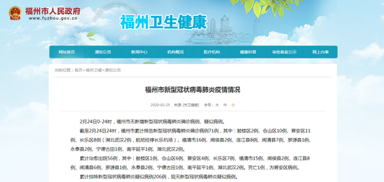 ![]() 2月24日0-24时,福州市无新增新型冠状病毒肺炎确诊病例、疑似病例。 截至2月24日24时,福州市累计报告新型冠状病毒肺炎确诊病例71例,其中:鼓楼区2例、仓山区10例、晋安区11例、长乐区8例(湖北武汉2例,航班经停长乐机场)、福清市16例、闽侯县2例、连江县8例、闽清县7例、罗源县1例、永泰县2例、宁德古田1例、南平延平1例、湖北武汉2例。 累计治愈出院56例,其中:鼓楼区1例、仓山区6例、晋安区4例、长乐区7例、福清市15例、闽侯县2例、连江县8例、闽清县6例、罗源县1例、永泰县2例、宁德古田1例、南平延平1例、湖北武汉2例。死亡1例,为晋安区病例。 累计排除新型冠状病毒肺炎疑似病例206例,现无新型冠状病毒肺炎疑似病例。 目前,累计追踪到的密切接触者1809人,已解除医学观察1488人,其余正在接受医学观察。 |