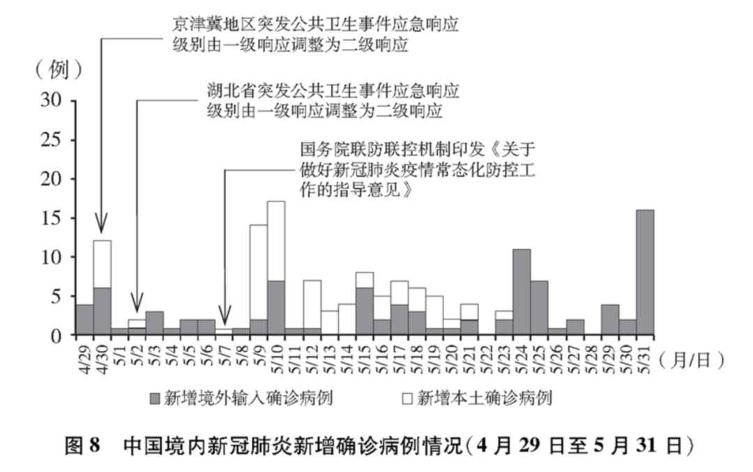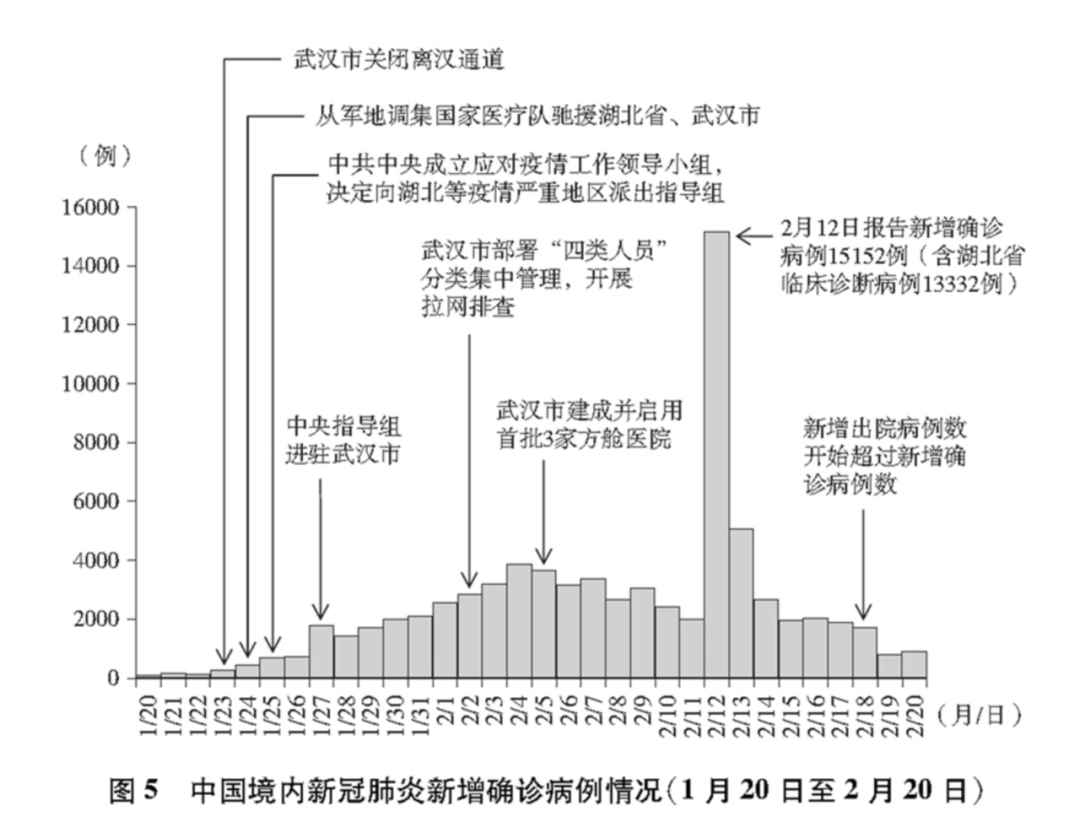 原标题:这就是中国行动! 7日,国务院新闻办公室发布《抗击新冠肺炎疫情的中国行动》白皮书。白皮书全文约3.7万字,真实记录中国抗疫艰辛历程。白皮书包括前言、正文和结束语。正文分为四个部分,分别是中国抗击疫情的艰辛历程、防控和救治两个战场协同作战、凝聚抗击疫情的强大力量、共同构建人类卫生健康共同体。 ![]() 五个阶段 白皮书将中国抗疫历程分成五个阶段: 第一阶段:迅即应对突发疫情,2019年12月27日至2020年1月19日; 第二阶段:初步遏制疫情蔓延势头,1月20日至2月20日; 第三阶段:本土新增病例数逐步下降至个位数,2月21日至3月17日; 第四阶段:取得武汉保卫战、湖北保卫战决定性成果,3月18日至4月28日; 第五阶段:全国疫情防控进入常态化,4月29日以来。 科学防治 截至2020年5月31日24时,31个省、自治区、直辖市和新疆生产建设兵团累计报告确诊病例83017例,累计治愈出院病例78307例,累计死亡病例4634例,治愈率94.3%,病亡率5.6%。 控制传染源 以确诊患者、疑似患者、发热患者、确诊患者的密切接触者等“四类人员”为重点,实行“早发现、早报告、早隔离、早治疗”和“应收尽收、应治尽治、应检尽检、应隔尽隔”的防治方针,最大限度降低传染率。 全面实行各类场所体温筛查,实行2小时网络直报、12小时反馈检测结果、24小时内完成现场流行病学调查。截至5月31日,全国累计追踪管理密切接触者74万余人。 ![]() 针对重点人群、重点场所、重点单位发布15项防控技术方案、6项心理疏导工作方案,并细化形成50项防控技术指南。 ![]() ![]() 更新诊疗方案 先后制修订7版新冠肺炎诊疗方案,3版重型、危重型病例诊疗方案,2版轻型、普通型管理规范,2版康复者恢复期血浆治疗方案,1版新冠肺炎出院患者主要功能障碍康复治疗方案。目前,第7版诊疗方案已被多个国家借鉴和采用。 ![]() 实施免费救治 截至5月31日,全国各级财政共安排疫情防控资金1624亿元。 截至5月31日,全国确诊住院患者结算人数5.8万人次,总医疗费用13.5亿元,确诊患者人均医疗费用约2.3万元。其中,重症患者人均治疗费用超过15万元,一些危重症患者治疗费用几十万元甚至上百万元,全部由国家承担。 ![]() 科研应急攻关 聚焦临床救治和药物、疫苗研发、检测技术和产品、病毒病原学和流行病学、动物模型构建5大主攻方向,部署启动83个应急攻关项目。 按照灭活疫苗、重组蛋白疫苗、减毒流感病毒载体疫苗、腺病毒载体疫苗、核酸疫苗等5条技术路线开展疫苗研发。 目前,已有4种灭活疫苗和1种腺病毒载体疫苗获批开展临床试验,总体研发进度与国外持平,部分技术路线进展处于国际领先。 组织科研团队开展科学溯源研究。 举国抗疫 医疗救治支援 1月24日至3月8日,全国共调集346支国家医疗队、4.26万名医务人员、900多名公共卫生人员驰援湖北。 19个省份以对口支援、以省包市的方式支援湖北省除武汉市以外16个地市,集中优质医疗资源支援湖北省和武汉市。 人民解放军派出4000多名医务人员支援湖北,承担火神山医院等3家医疗机构的医疗救治任务,空军出动运输机紧急运送医疗物资。 ![]() 从全国调集4万名建设者和几千台机械设备,仅用10天建成有1000张病床的火神山医院,仅用12天建成有1600张病床的雷神山医院。 加强临床血液供应,10个省份无偿支援湖北省红细胞4.5万单位,血小板1762个治疗量,新鲜冰冻血浆137万毫升(不含恢复期血浆)。 ![]() 医疗物资支持 医用物资保供实现从“紧缺”到“紧平衡”“动态平衡”“动态足额供应”的跨越式提升。2月初,医用非N95口罩、医用N95口罩日产量分别为586万只、13万只,到4月底分别超过2亿只、500万只。畅通供应链条和物流渠道,建立联保联供协作机制,源源不断地把全国支援物资运送到疫情防控重点地区。 ![]() 生活物资保障 1月27日至3月19日,全国通过铁路、公路、水运、民航、邮政快递等运输方式向湖北地区运送防疫物资和生活物资92.88万吨,运送电煤、燃油等生产物资148.7万吨,煤、电、油、气、热等能源供应充足。 动员社会力量 400万名社区工作者奋战在全国65万个城乡社区中,截至5月31日,全国参与疫情防控的注册志愿者达到881万人,志愿服务项目超过46万个,记录志愿服务时间超过2.9亿小时。 截至5月31日,累计接受社会捐赠资金约389.3亿元、物资约9.9亿件,累计拨付捐款资金约328.3亿元、物资约9.4亿件。 ![]() 保护海外中国公民 驻外使领馆通过各种渠道宣介疫情防护知识,向留学生发放100多万份“健康包”,协助在海外确有困难的中国公民有序回国。 共建人类卫生健康共同体 截至5月31日,中国共向27个国家派出29支医疗专家组,已经或正在向150个国家和4个国际组织提供抗疫援助;指导长期派驻在56个国家的援外医疗队协助驻在国开展疫情防控工作;地方政府、企业和民间机构、个人通过各种渠道,向150多个国家、地区和国际组织捐赠抗疫物资。 3月1日至5月31日,中国向200个国家和地区出口防疫物资,其中,口罩706亿只,防护服3.4亿套,护目镜1.15亿个,呼吸机9.67万台,检测试剂盒2.25亿人份,红外线测温仪4029万台,出口规模呈明显增长态势,有力支持了相关国家疫情防控。