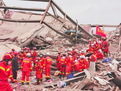 来源:福建日报 ![]() 9日下午,现场救援人员在积极施救。 争分夺秒,生死营救。泉州市鲤城区欣佳酒店楼体坍塌事故发生后,来自全省消防系统和社会救援组织的救援人员分片分区,步步推进。搜救犬、生命探测仪、生命探测雷达全都用上,只要发现有生命迹象,立即进行重点施救。 一家三口 先后得救 7日23时01分,在厦门市消防救援支队的作业区域内,搜救犬突然对着一处缝隙吠叫起来。“这下面可能有人!”消防救援人员迅速带来另一条搜救犬,对疑似人员被困区域进行二次确认,果然,下面有被困者。 经过生命探测仪进一步探测和听敲击回声,消防救援人员确定了被困人员的位置。为了不对被困人员造成二次伤害,又能迅速把他们救出来,消防救援人员当机立断,决定以“先纵向下探,后横向掘进”的办法,避开被困人员的正上方进行破拆作业,开辟出生命通道,直通受困人员位置。 “快!这里有孩子!”通道打开后,三名消防救援人员先后进入通道,通过交替接力的方式,经过一个多小时艰苦救援,一个约莫两周岁的小男孩被三人从通道口递了出来。 “活着、活着,还活着!快让一让!”救援人员盖住孩子的眼睛并用毛毯包住获救男孩,紧急送到救护车上。 随后,在8日零时21分和零时23分,孩子的父母亲也先后获救。 跨越五小时 母子获救 8日上午9时许,泉州市消防救援支队在坍塌现场某个区域发现一名小孩。当时,孩子意识清醒,还能流利对答。但是由于洞口太小,无法第一时间救出孩子。 救援人员一边安慰孩子,一边帮其戴上头盔做好保护。经过两个多小时一点点破拆,小孩被慢慢托举出洞口。 “妈妈在我旁边,还活着。”获救男孩喊出第一句话。 根据这一线索,救援人员继续在洞内搜救,发现小孩的母亲卡在了小孩身下的位置,意识还算清醒,但是右脚被卡住无法出来。 由于小孩母亲被埋压较深,且被卡区域狭小,被困位置离消防开辟的通道2米多,身体被沙发、水泥板困住,右脚被不锈钢窗户和梁柱夹住。 “你儿子已经平安救出,不要担心,我们很快救你出来。”消防指战员一边安慰道,一边利用蛇眼生命探测仪查看被卡情况。 “空间非常狭小,破拆工具用不了,我们先破拆外围的沙发、水泥板,再钻进去破拆脚部被困建筑物。” 破拆,清理,再破拆,救援空间一点点扩大,消防指战员从开辟出的空间钻进去查看情况,并逐步利用磨砂机、往复锯、液压破拆工具组等工具轮番进行破拆。 时间就是生命。待救援口刚好能让一个人勉强进入时,现场指挥部决定让救援经验丰富的福州市消防救援支队特勤大队二级消防长廖吉鹏冒险一试。 廖吉鹏爬进去后,首先小心清理了困住女子脚的杂物,接着用手动锯子锯门框,使其松动然后移开,最后用小型液压剪逐次剪断窗户框,让她被困的那只脚能自由活动。由于被压的时间太久,她已无力自己爬出,廖吉鹏又用床单将其小腿缠住,慢慢帮她挪出。 下午4时36分,小孩的母亲被成功救出。 厦漳联手 救出一家 8日早上8时13分,厦门市消防救援支队救出一名被困男子。 “快去救他们!”男子获救后,指着妻子和孩子的方向,反复向消防员强调他们的位置。 10时24分,漳州市消防支队探测到生命迹象,发现被困人员被压于废墟下,情况不明。两名救援人员立即钻到废墟里,初步侦查发现从洞口到被困人员处呈U形,距离约10米,两名救援人员艰难爬向被困人员处,做进一步侦查。 救援人员跟被困人员进行简单交流后,了解到该处有两名被困人员,是一名12岁男孩及其母亲。 随即,救援人员利用软吸管给被困人员喂水并进行安抚。同时,分两组开辟生命通道,一组通过洞口进入,携带水桶,在楼板下方清理障碍,并接力将障碍清理至洞外;另一组在被困者斜上方利用破拆工具对楼板进行破拆。 经过3小时的破拆及障碍物清理,终于开辟出一条生命通道。13时30分,救援人员将被困的母亲从废墟中救了出来。 而在另一侧,厦门市消防救援支队也在对被困男孩进行施救。为尽快将男孩救出,漳州市消防救援支队救援人员在旁协助,利用液压顶杆将压住男孩的楼板顶起。 14时许,男孩终于被安全救出。至此,一家三口相继被厦门、漳州两地消防救援人员合力救出。 被困52小时 母子奇迹脱险 9日深夜,23时05分、23时08分。 历经3个多小时的接力救援,一对被困52小时的母子,奇迹般被成功救出。现场接连响起掌声和欢呼声。 “是在沙发底下吗?” 9日晚8时许,已连续两天奋战在搜救现场的漳州市消防救援支队指战员,利用生命探测仪探测到一片断裂的钢架下有生命迹象,并通过喊话及敲击的方式进一步确认是一对母子。听到有回应,通过与其对话,确认被困人员位置。 由于被困人员的区域被钢构件、楼板层层埋压,且被压超过48个小时,周围情况不明,为避免给被困人员造成二次伤害,只能用手工器械及徒手清理木板、砖块、钢筋等障碍物,开辟救援通道。 救援中,搜救员多次与被困人员对话,确定被困人员被压在沙发下面。为进一步了解被困人员周围情况,救援人员不定时利用蛇眼生命探测仪观察被困人员被困区域内部情况,并根据情况调整作战策略。为做好长时间救援准备,他们先给母子输送生理盐水和食物,确保对方生命安全。 随着救援不断深入,救援难度越来越大,消防救援人员只能单人作业,并用跪或卧的形式清理障碍。经过3个多小时的救援,消防救援人员终于开辟出一条生