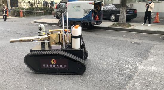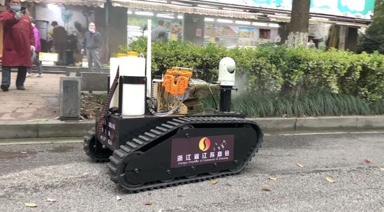 近日,一台萌萌的“小坦克”出现在了杭州街头,虎头虎脑的造型甚是吸睛。据了解,这是杭州市城管局市容环境卫生保障中心刚刚获赠的防疫消杀机器人。 ![]() 杭州市城管局市容环境卫生保障中心宣教科副科长卞方超介绍说,这台防疫消杀机器人质量为230公斤,由电机驱动,配备了60节履带,可以适应各种复杂的地形。机器人的上方则由三部分组成,机头部位装载着一颗高清摄像头,通过实时的图像信号,工作人员可以远距离掌握喷洒情况,无遮挡的状态下,遥控半径可达500米。 ![]() 机身居中位置的“坦克炮筒”其实是一台油压驱动的弥雾机,工作半径可达3米多。“弥雾机的原理是脉冲式的,通过脉冲把药液雾化到0.1微米。” 卞方超说,“普通的水雾消毒方式的雾滴非常大,在空气悬浮时间非常短,3秒即落至地面,导致病菌病毒不能有效杀灭。弥雾消毒中通过弥雾剂和加热,使雾化温度达到最佳温度38度,同时通过弥雾剂消毒剂雾化空气悬停时间可达30秒以上,充份达到消杀效果。” ![]() 机身的后方的“弹药仓”则可以装载25升的消毒药水。别看“小坦克”个头不大,但是喷洒效率约是人力的3倍,每小时可以消杀15000平方米的区域。 卞方超表示,这台防疫消杀机器人才刚刚开始“服役”,上周四在路面上做了初步的测试。考虑到它没有路权无法在道路上作业,结合其工作特点,日后将会服务于一些疫情防控的重点区域,发挥其最大限度的作用。 图片、视频均由杭州市城管局市容环境卫生保障中心提供