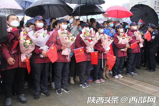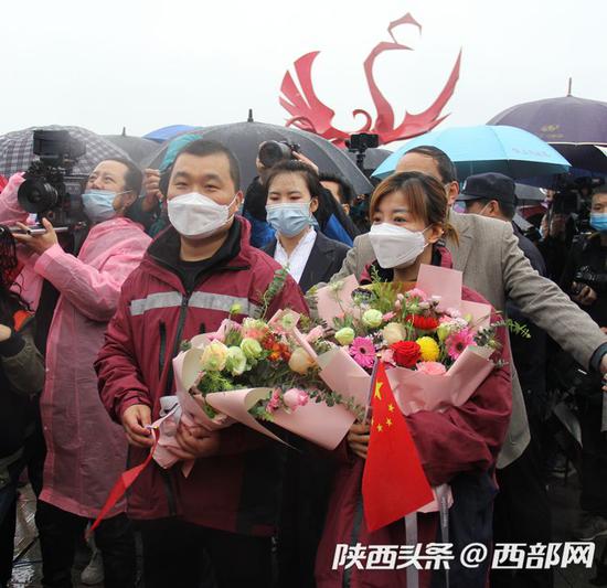 ![]() 英雄凯旋 ,宝鸡交警铁骑护航以最高礼仪欢迎英雄回家。 西部网讯(记者 鲁鹏飞)4月2日,宝鸡市第三批和第五批援湖北医疗队16名队员结束14天的集中休养,统一乘车返回家乡宝鸡,宝鸡市以最高规格礼遇迎接英雄回家。“热烈欢迎英雄凯旋!”“向抗疫英雄学习致敬!”“抗疫之路 幸而有你 山河无恙!” “你们是新时代最可爱的人。”一路上,热心群众冒雨夹道欢迎英雄归来。宝鸡市在行政中心广场举行热烈的欢迎仪式,向“最美逆行者”致敬!副省长、宝鸡市委书记徐启方,宝鸡市市长惠进才等迎接英雄归来。 上午11时许, 援湖北医疗队员乘车抵达宝鸡,宝鸡市公安局交警支队25名交警驾驶警用摩托车沿途护航,30名执勤民警列队立正敬礼,宝鸡交警用最高礼遇向英雄们致敬,用最高礼仪欢迎荣归故里的英雄。“欢迎回家!”“向抗疫英雄学习致敬!”一路上,热心群众们冒雨夹道欢迎英雄归来,欢呼声此起彼伏。 ![]() 4月2日,宝鸡援湖北医疗队16名队员返乡回家。 新冠肺炎疫情发生以来,宝鸡市自1月26日先后派出7批医护人员赶赴湖北支援,共有44名宝鸡医护人员奔赴武汉疫情一线,参加医疗救治工作。 此次返回家乡宝鸡的是第三批和第五批援湖北医护人员。他们是宝鸡市中医医院副主任医师代强、主治医师张贞鲁、主治医师周涛、主治医师赵岩、主管护师支杨、主管护师权瑞、主管护师沈杨、主管护师任广卓、护师黄蕊、护师张怡,高新人民医院副主任医师谭国超,市口腔医院主治医师张菊侠、主管护师杨耀花,西安医学院附属宝鸡医院主管护师崔东波,市第二人民医院护师吴东,市第三人民医院护士付敏。 ![]() 英雄凯旋。 援湖北医护人员奔赴武汉,分秒必争与新冠肺炎感染的病毒直面搏斗,他们将生死置之度外,舍小家为大家,勇敢逆行,她们不辱使命,忠诚担当,用生命守护生命,谱写了可歌可泣的新时代英雄壮歌。她们是时代的楷模,是宝鸡市民心中的英雄,宝鸡用真诚热烈的方式迎接英雄凯旋。 ![]() 英雄凯旋。 欢迎仪式上,副省长、宝鸡市委书记徐启方向16名医护人员颁发了“抗疫英雄”荣誉证书。徐启方说,宝鸡援湖北医疗队员冒着生命危险,以精湛医术救治患者,以医者仁心温暖患者,以大爱精神鼓舞患者,把义无反顾的“逆行”永远定格在宝鸡干部群众及武汉和全国人民心中,把初心和使命写在了抗击疫情一线,把一方有难、八方支援的情怀和担当展现在武汉、奉献给祖国,无愧于全市人民的重托,无愧于这个伟大的时代。“你们是宝鸡的英雄,是最美的天使,宝鸡人民为拥有你们这样的优秀儿女而感到骄傲和自豪!” ![]() 英雄凯旋。 ![]() 英雄凯旋。 ![]() 热心群众冒雨欢迎英雄。 ![]() 热心群众冒雨欢迎英雄 。 ![]() 热心群众冒雨欢迎英雄。 |