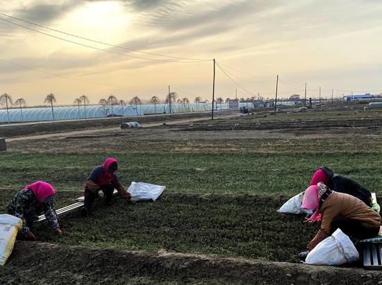 ![]() 花农进行田间管理,选取长势良好的花苗发送给外地客商。