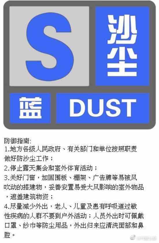 新京报快讯(记者 邓琦)北京市气象台4月24日18时35分发布今年首个沙尘蓝色预警信号。预计当前至24日夜间,北京大部分地区有沙尘天气,请注意防范。