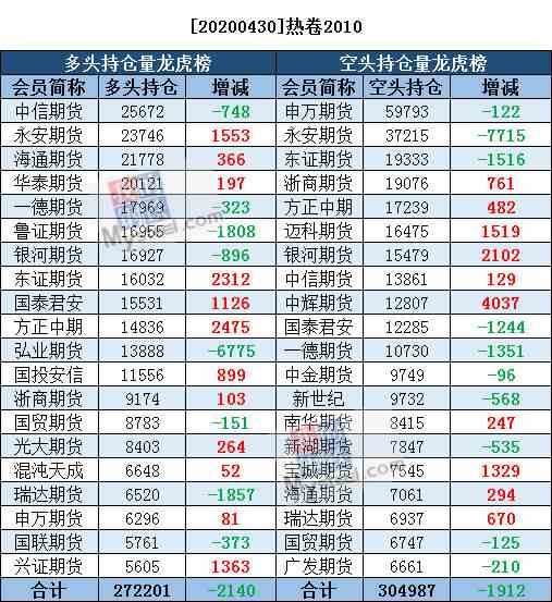4月30日黑色系持仓日报