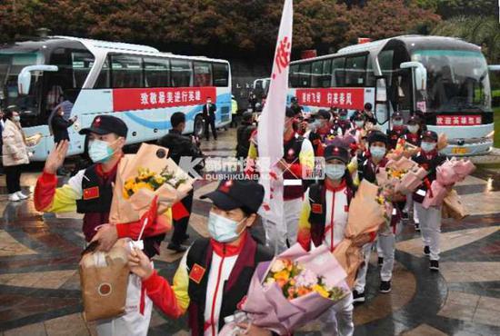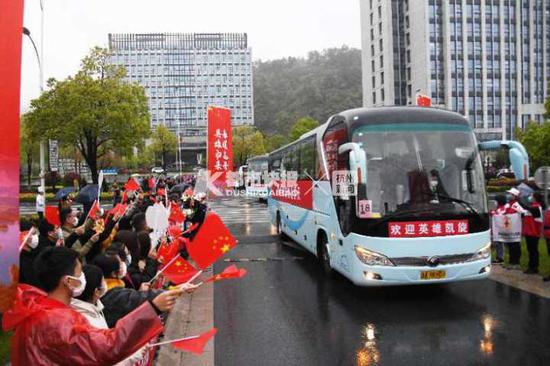 欢迎英雄回家! 向英雄们致敬! 欢迎援鄂医疗队的英雄来千岛湖疗休养。。。。。。 ![]() ![]() 今天傍晚17点18分,杭新景高速千岛湖收费站,载着杭州市第三批援鄂医疗队266名“白衣战士”的大巴车呼啸而至,迎接他们的,是淳安人民的最高礼遇。 ![]() ![]() 从高速出口到集中休养基地——千岛湖滨江希尔顿度假酒店,一路警车开道前引和护卫。 (视频:童炼杰) 沿路翘首等待的干部、群众、志愿者冒雨拉着横幅,举着手牌,挥动红旗,夹道欢迎“英雄们”的到来,队员们隔着车窗,热情地挥手回应。 (小视频来源:小编朋友圈) 千岛湖人的朋友圈开启同步直播,看了英雄们胜利归来的照片和航拍视频,有人感叹:隔着屏幕都酸了鼻子…… ![]() ![]() ![]() ![]() 千岛湖滨江希尔顿度假酒店门口,淳安县委书记黄海峰已率领县四套班子领导早早等候,他们代表了淳安45万人民,用最高的礼仪和最周到的服务迎接英雄们凯旋。 ![]() “老公,你好伟大,终于胜利归来了,我和孩子都为你骄傲!”大巴车从淳安县第一人民医院门口经过时,该院十三病区护士长刘旭恒激动不已,等不及见到丈夫,就拨通了视频通话。刘旭恒的丈夫是此次援鄂医疗队队员余威勇,“本来以为他要五月份才能回来,现在突然接到通知,幸福来的太突然了,希望他在接下来时间里好好休息!” 17时38分,9辆大巴车缓缓驶入希尔顿度假酒店。医疗队员家属和许多群众已在现场等候。 ![]() ![]() ![]() 酒店入口处,舞狮队尽情舞动,在响彻的掌声和充满敬意的目光中,医疗队员们精神抖擞地走下车。 ![]() ![]() 在简短隆重的欢迎仪式上,淳安县委书记黄海峰说,“杭州市援鄂医疗队是一支英雄的团队,在祖国和人民最需要的时候,大家主动请缨、闻令而动,奔赴抗疫主战场。在武汉期间,大家与时间赛跑、与疫情决战,以仁者医心和精湛医术挽救了一个个鲜活生命,取得了‘高出院率、低死亡率、医务人员零感染’的优异成绩,不愧是人民心目中的英雄。” ![]() 据了解,杭州市第三批援鄂医疗队由市属医院、区县市级医院以及民营医院等47家的医务人员组成,其中包含了淳安县的24名队员。2月9日开始,这支队伍携带了心电监护仪、有创无创呼吸机、体外膜肺ECMO等医疗设备,奔赴湖北武汉的抗疫主战场,在同济医院光谷院区接收重症患者126名,度过了51个日日夜夜。如今,山花烂漫,战士凯旋。这支援鄂医疗队返回浙江后,将在淳安进行为期14天的集中休养。 淳安是“零确诊”的一方净土,具有生态环境一流、湖光山色绝佳、开放景区众多的特点,是度假的胜地,也是心灵的绿洲。 黄海峰说,接下来的14天,淳安将为杭州市第三批援鄂医疗队提供最优质的服务,让大家住得暖心、游得舒心、玩得开心,把身体养得棒棒的、能量补得满满的,以最佳状态与家人和同事团聚,回岗后再立新功。 据了解,为体现对医护人员的敬意,淳安出台了援助武汉医护工作者三年内免费游湖、民宿半价优惠等一系列优待政策。同时,全国医护工作者凭有效证件可在年底前免门票游览包括千岛湖景区、文渊狮城景区、石林景区在内的10个景区。 |