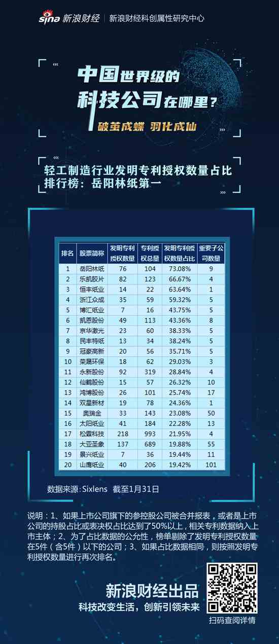 | 相关阅读 证监会发布科创板科创属性评价指标体系 中国的专利分为发明、实用新型和外观设计三种类型。根据《专利法》的定义,发明是指对产品、方法或者其改进所提出的新的技术方案。发明专利授权量主要体现公司技术创新的质量情况,发明专利授权数量占比越高,意味着公司所有专利的含金量就越高。 那么,轻工制造行业的专利的含金量究竟如何呢?「新浪财经科创属性研究中心」将为你一一解答。 Choice的数据显示,截至1月31日,轻工制造行业共有130家公司。Sixlens的数据显示,这130家公司总共有2749件授权发明专利,其中有120家有授权发明专利,另外10家没有授权发明专利。平均而言,每家公司拥有21.15件授权发明专利。 为了相对指标的数据更具公允性,「新浪财经科创属性研究中心」剔除了发明专利授权数量在5件(含5件)以下的40家公司后,剩余90家。 发明专利授权数量占比前3名的公司分别是岳阳林纸、乐凯胶片、恒丰纸业,所对应的占比分别为73.08%、66.67%、63.64%。具体而言,岳阳林纸共有76件发明专利授权,其专利授权总量为104件,占比为73.08%。从具体案例来看,在岳阳林纸(上市主体)的所有发明专利中,被引用次数最高的专利为《一种低定量铜版纸的抄造工艺》,专利申请号为“200810031759”,申请日期为2008年7月10日,被引用次数为21次,维持年限为11年。 1月31日,市值排名前3名的公司分别是欧派家居、晨光文具、顾家家居,其发明专利授权数量占比分别为2.14%、1.90%、0.21%,所对应排名分别为第81名、第84名、第90名。 注释:按照专利授权的难易程度来看,发明专利授权最难,需要经过实质审查环节,保护期通常为20年;而实用新型和外观设计专利授权相对容易,只需要经过形式审查即可授权,保护期通常为10年。国家知识产权局的数据显示,2019年,共审结发明专利申请102.3万件,实用新型专利申请198.1万件,外观设计专利申请74.4万件,共授权发明专利45.3万件,实用新型专利158.2万件,外观设计专利55.7万件。发明授权率为44.28%,实用新型授权率为79.86%,外观设计授权率为74.87%。 数据来源:国家知识产权局新浪财经(单位:万)以下为轻工制造行业发明专利授权数量占比排行榜。 ![]() 附注: 1、如果上市公司旗(金麒麟分析师)下的参控股公司被合并报表,或者是上市公司的持股占比或表决权占比达到了50%以上,相关专利数据纳入上市主体。 2、资料和数据来源:上市公司公告、Wind、东方财富Choice、同花顺iFind、沪深交易所、天眼查、其他公开资料等。其中,专利相关数据来源于Sixlens(国家知识产权大数据产业应用研究基地)。(文/新浪财经 黄朋) 【上市公司科创属性系列榜单】 轻工制造行业单个专利被引用次数排行榜:瑞尔特第一 轻工制造行业发明专利申请量排行榜:大亚圣象第一 轻工制造行业发明专利授权数量排行榜:松霖科技第一 轻工制造业发明专利授权数量占比排行:岳阳林纸第一 轻工制造行业实用新型专利申请量排行榜:瑞尔特第一 轻工制造行业同族专利数量排行榜:松霖科技第一 轻工制造行业外观设计专利申请量排行榜:老凤祥第一 轻工制造行业有效发明专利排行榜:松霖科技第一 轻工制造业有效发明专利维持年限排行:紫江企业第一 轻工制造行业专利被引用总次数排行榜:松霖科技第一 轻工制造行业专利申请总量排行榜:老凤祥第一 轻工制造行业专利授权总量排行榜:老凤祥第一 海量资讯、精准解读,尽在新浪财经APP 责任编辑:黄朋 |