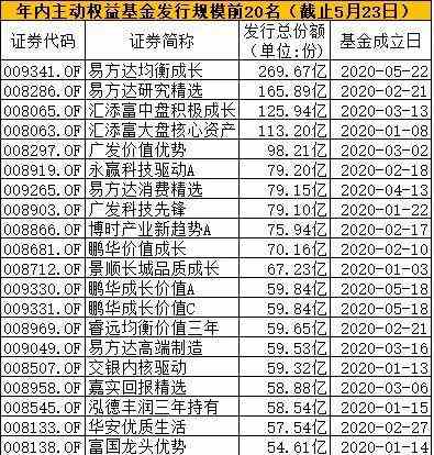 | 刚刚成立!一天募资近270亿,今年主动偏股新基金吸金超5000亿! 中国基金报记者 方丽 陆慧婧 时隔三个月时间,年内偏股型基金单只首发记录再次刷新。一款新基金一日吸金达到270亿元,引起市场关注。这也直接助推今年偏股型基金总募集金额整体超过5000亿元,成为历史小高潮期。 易方达均衡成长首发近270亿 5月23日,易方达发布易方达均衡成长股票基金合同生效公告,该基金最终成立规模逼近270亿元,问鼎年内首发规模最大的偏股型基金。 基金行业历史上主动权益基金首发座次也随之改写,易方达均衡成长仅次于嘉实策略增长、兴全合宜、易方达新丝路,在主动权益基金首发史上,排名第4位(不包括救市基金)。 ![]() 基金合同生效公告显示,易方达均衡成长股票单日募集规模269.67亿元,其中,募集期间基金管理人的从业人员认购该基金291万元。 从认购户数上看,最终认购户数超过31万户,这一认购户数也仅次于今年1月份发行的广发科技先锋以及3月发行的睿远均衡价值两只基金。户均认购金额方面,易方达均衡成长户均购买金额8.67万元,在今年发行的爆款基金中也表现不俗。 易方达均衡成长基金经理由陈皓担任,陈皓目前管理的包括易方达平稳增长混合、易方达科翔、易方达新经济混合在内多只基金,长期业绩也均可圈可点。 他自2012年9月28日以来掌舵易方达平稳增长混合超过7年时间,截止5月22日,任职期回报达到230.22%。独自管理易方达科翔时间也超过6年,任职期回报284.88%。 基金发行白热化局面,也让基金从业人员倍感焦虑。有业内人士透露,事实上,今年头部基金公司压力与日倍增,排名前十的基金公司规模差距都非常小,只要稍微不努力就又被超越的可能。据其了解,一家大型基金公司旗下渠道销售人员今年五一假期都在加班。 “从权益基金竞争上看,华夏基金旗下股票型ETF一季度猛增429.47亿,在ETF领域遥遥领先其他基金公司,而广发基金旗下明星基金经理刘格菘一季度吸金能力更是惊人,大型基金公司里,没有一家可以有丝毫懈怠之心。”一位基金公司人士称。 也有基金公司人士表示,所在基金公司今年一季度已经非常努力,整体规模也有所增长,但是从整个一季度最终情况上看,在全行业里的位置并没有提升。 ![]() 下周一开始又有一波权益基金发行潮 实际上,后续还有不少优质基金经理的权益基金在路上。 比如一些知名基金经理后续都有产品出炉,如银华基金的刘辉、博时基金的葛晨、南方基金的茅炜和王博、信达澳银的冯明远、大成基金刘旭等。若近期市场持续回暖,可能这些基金也会有较好的募集表现。 ![]() 偏股型基金年内募集超5000亿 受益于今年前两个月以及目前权益类基金不俗的销售成绩,年内偏股型基金总募集金额也节节攀升,整体超过5000亿元,成为历史上的小高潮。 WIND资讯数据显示,截至5月23日,今年以来成立新基金达到512只,合计发行份额为7390.4亿份,其中包括股票型基金、混合型基金在内的权益基金合计大约发行308只,合计规模达到5131.28亿元,平均规模超16.6亿元。 今年前两个月,市场行情较好,投资者入市热情高涨,权益基金募集规模爆棚,形成史上第三次权益基金发行高潮。前两波权益基金发行高潮出现在2007年和2015年:2007年1月至9月合计成立了31只权益基金,募集规模合计2806.8亿元,平均单只募集90.54亿元;2015年上半年成立了394只新基金,合计募集规模超过1万亿元,平均募集规模25.89亿元。 今年一季度基金销售再度火爆,每周都有“日光基”、千亿资金追捧、比例配售创出新低……募集规模超50亿元的产品达到23只。权益基金“一日售罄”情况明显增多,今年以来宣布“一日售罄”的权益基金达到31只。不过,基金发行的火爆并非全面开花,爆款基金主要聚集在兴全、睿远、汇添富、易方达、富国等基金公司旗下产品,资金追逐的对象是拥有良好口碑基金经理发行的新基金。此外,在火爆的发行市场上基金公司表现得较为理性,面对狂热的资金并没有盲目扩张规模,多只基金实行了限额发售。 新基金募集的资金将为市场带来更多新“弹药”。若按照60%的平均仓位计算,今年以来新发权益类基金将给市场带来约3000亿元的增量资金。 投资者渴求优质管理人 其实这个5月A股市场平淡,沪深300涨幅仅为0.03%,但令人惊讶爆款基金频频出炉。除了易方达之外,汇添富优质成长基金募集也很可观,而近期鹏华基金王宗合、景顺长城余广两大老牌知名基金经理新发基金,也分别获得60亿、41.61亿发行规模。 如此的新基金发行成绩,一改市场对新基金发行靠天吃饭的略显刻板印象。在疫情阴霾之下A股市场自3月下旬以来震荡起伏,亮点平平,在这个“天时”不太好的时期还出现爆款基金,背后的驱动力在何方? “炒股不如买基金”观点深入人心,是这一现象出现的第一驱动力。2019年,主动股票型基金、偏股混合型基金盈利皆超过沪深300指数约10个百分点,今年权益基金整体表现也好于沪深300表现,展示了公募基金等机构投资者通过专业投资战胜市场的能力。 在这一过程中,一批被市场验证、有中长期优秀投资业绩的基金经理价值凸显,一方面,受到银行、券商、互联网平台等基金代销渠道所重视,不少大型银行渠道更是将三年业绩是否领先作为合作首要参考标准,有些甚至给予一些费率让利来吸引基金公司;另一方面,越来越多的投资者也认可挑选业绩出色