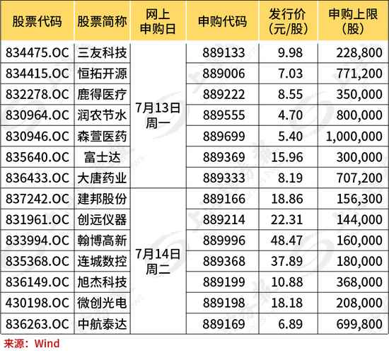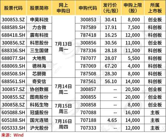 7月13日至7月17日这周足足有29只新股登场,包括3只主板新股、7只科创板新股、5只创业板新股及14只新三板新股。