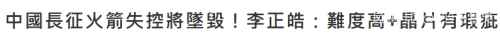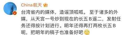 | 伴随着空间站和首飞周年两个节点,长征五号B运载火箭“被黑了”。 4日,台媒“三立新闻网”发文称“中国长征火箭失控将坠毁”,并声称“晶片有瑕疵”。5日,微博科普博主@北斗_玉衡发长文,一一驳斥了台媒毫无证据的抹黑。 ![]() 今年4月29日,长征五号B(简称长五B)遥二火箭在海南文昌航天发射场点火升空,将载人航天工程(603698)空间站“天和核心舱”精准送入预定轨道,发射任务取得圆满成功,中国空间站建设首战告捷。 去年5月5日,长五B运载火箭在中国文昌航天发射场点火升空,将新一代载人飞船试验船等载荷的组合体送入预定轨道,实现空间站阶段飞行任务首战告捷,拉开我国载人航天工程“第三步”任务序幕。 然而,伴随着空间站和首飞周年的两个节点,台媒又“坐不住了”。 5月4日,台媒“三立新闻网”发文称“中国长征火箭失控将坠毁”,声称是“晶片有瑕疵”。 ![]() 5日,微博科普博主@北斗_玉衡发文驳斥了这些毫无根据的抹黑。 针对台媒“失控坠毁”的说法,@北斗_玉衡表示,这应当被称为“无控再入”。