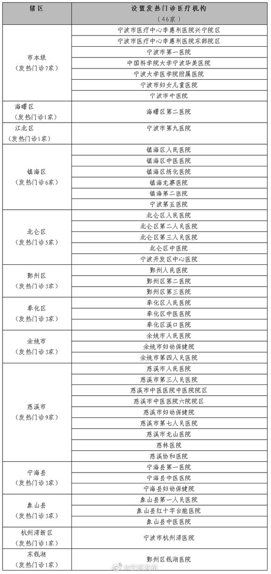 昨天,宁波市卫生健康委员会发布消息:宁波已设置发热门诊医疗机构,发热门诊开设时间为24小时!