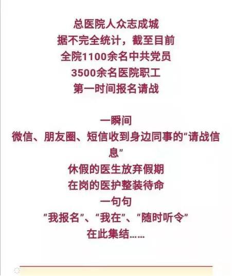 武汉疫情牵动人心,津门医护整装待发! “到武汉去,到疫情最严重的地方去!”、“我报名,我是共产党员!”、“我参加过非典治疗有经验,第一批我来!”…… 近日,随着武汉爆发新型冠状病毒感染的肺炎出现扩散,天津市医疗工作者们心急如焚,在认真做好本职工作,积极在本市开展对疫情预防与治疗的同时,报名奔赴武汉,走上抗击疫情的最前线,正在成为天津白衣天使们的最强音。 ![]() 出征,目的地武汉 1月25日,大年初一下午六点,合家团圆共庆佳节的温馨时刻。天津总医院的一间普通办公室里却显得比往日更加忙碌,一群医生、护士正在忙碌的做着演练和准备——这个有男有女、有老有年轻的9人队伍,有着一个共同的名字——天津总医院援助武汉医疗服务队。 对于这些医护工作者来说,如何戴口罩和护目镜,如何穿脱防护服和鞋套,这些都是日常工作中轻松得不能再轻松的动作,今天的演练却有些严肃,每个人都一丝不苟,争取做到熟练再熟练。屋里的每个人也都知道,要抓紧时间,明天,他们就将奔赴武汉抗击疫情的第一线。 这支由感染科、呼吸科、检验科、重症监护科医护人员组成的精干队伍,将组成总医院第一批赴武汉支援队伍,他们的背后,则是几千名总医院医护人员的共同坚守。 ![]() 一天之前,天津医大总医院党委发布致全院党员干部全体职工动员令,要求全体党员干部和医务工作者立刻进入紧急战时状态,取消春节休假,坚持在岗,并要“从我做起,从现在做起,全力以赴做好疫情防控工作”。 “疫情就是命令,责任重于泰山,”总医院动员令第一句话,正成为天津主要医疗机构的共同心声。在一中心、在胸科医院、在环湖医院。。。。。。天津市各家主要医院都有医务人员在打点行装,为奔赴武汉做最后的演练和准备。 ![]() 当年战非典 今日再出发 在即将出征的队伍里,有一位52岁的医生,他的名字叫彭民。2003年,彭民在天津海河医院参加了3周时间的抗击非典战斗,安全的将最后几批患者送出医院。 “2003年迎战非典的时候,是在咱天津的海河医院作为医生出征,这次则是代表天津医护人员去支援武汉第一线。”彭民乐观的告诉记者,“现在各方面的条件比非典时候要好很多,这次对战胜疫情,取得胜利更是充满信心。” 距当年抗击非典整整过去了17个年头,当时的年轻医生,此次则变成了总医院整个支援队伍中年龄最大的一员。作为队伍里的老大哥和主心骨,彭民经常会嘱咐年轻同事们要注意各种细节,确保万无一失。 让彭民对上前线充满信心的,除了自身技术能力和充分的物资准备,更是因为有一个稳定的“后方”。家人的支持让他免除了后顾之忧,除了妻子的默默支持外,彭民的老母亲今年已经80岁了,当得知儿子将要奔赴武汉时,老太太给与了百分百的支持,“母亲是老党员,知道情况后,非常的支持我。” 离出发时间越来越近,再检查一次装备,再叮嘱一次战友,再告别一次家人,战士就要出征! ![]() “吃得苦、耐得烦、霸得蛮” 相比于彭民早早对家人“坦白”赴武汉的行程,总医院呼吸科ICU护士长沈悦好则计划在出发前的最后一刻才把消息告诉8岁的女儿。 作为湘妹子,沈悦好有着较为泼辣的性格,2009年从天津医科大学毕业进入总医院工作11年,医大人这个称呼让其感到骄傲。“总医院的每个医生大夫,对于支援武汉,谁都没有怨言。” ![]() “有任务绝对不推辞,主动要求上前线。”当动员令发布之后,总医院人众志成城,据不完全统计,全院1100余名共产党员、3500余名医院职工报名请战, 一瞬间,微信、朋友圈、短信收到身边同事的“请战信息”接连不断。休假的医生放弃假期、在岗的医护整装待命,一句句“我报名”、“我在”、“随时听令”在此集结…… 当接到报名的消息后,沈悦好决定“近水楼台先得月”一次,第一时间报上了自己的名字。 当然,她也知道,报名先后并不重要,第一批赴武汉支援队伍组成人员,需要通过业务、态度、身体综合评价之后的综合选择。 外表上看,湖南人”吃得苦、耐得烦、霸得蛮”的秉性,与天津开朗乐观豁达的城市性格,在沈悦好身上统一在了一起。 却很少有人知道,她已经12个年头没能回湖南老家陪父母过年。2020年春节这一次,原本定好了回湖南的机票,能够陪爸妈呆一个星期,但随着疫情消息的发展,沈悦好退掉了回老家的机票,选择在医院坚守,直到被挑选成为第一批赴武汉支援的队员。 现在,除了8岁的女儿,家里人都知道沈悦好要去武汉的消息,如何将这个消息告诉女儿,沈悦好一直犹豫不决。“肯定是要告诉孩子的,不能骗孩子,但是能拖就尽量拖一拖吧,临走之前再告诉她。” 让她放心的是,有丈夫和公公婆婆陪着过年,孩子也不会太孤单。 “我们都会胜利!” 除夕夜,千家万户沉浸在节日的喜悦和团聚的温馨中,白衣天使们却在迅速集结,手写战书待命出发。 队伍中有他:一中心医院检验科主管技师郑健,除夕下午接到通知那一刻起,就写下了请战书:“职责所在义不容辞”,毫不犹豫地报名加入赴武汉医疗队,并光荣地成为其中一员。 ![]() 早在2003年,郑健就第一批进入医院的发热门诊,接触危险标本物。他认为,作为医务工作者,任何地方有需要,都应该冲锋在前。这次赴武汉医疗队需要检验人员,郑健觉得很幸运,可以为当地的患者尽一份力。 几乎在同一时刻,郑健的爱人也在加班。爱人是市第三中心医院的医