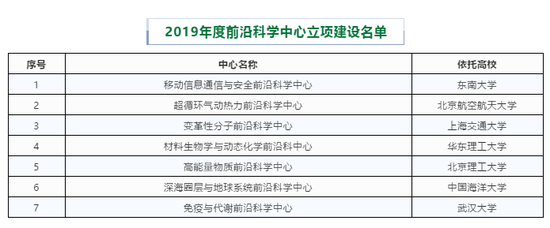 教育部发布2019年度前沿科学中心立项建设名单,全国七所高校入选,上海有两所,包括上海交通大学变革性分子前沿科学中心、华东理工大学材料生物学与动态化学前沿科学中心。前沿科学中心旨在进行前瞻性基础研究、引领性原创成果的重大突破,将在关键领域自主创新中发挥前沿引领作用。