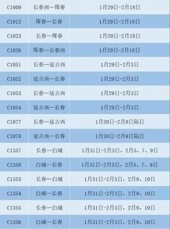 沈阳局集团公司根据旅客出行需求变化,调整优化列车开行方案长春站部分旅客列车临时停运。 管内列车: ![]() ![]() ![]() ![]() ![]() ![]() 直通列车: ![]() ![]() 为落实国务院2020年春节假期延长安排,国铁集团决定,自2020年1月28日0时起,此前在车站、12306网站等各渠道已购买的全国铁路火车票旅客自愿改变行程需退票的,铁路部门均不收取退票手续费,购买铁路乘意险的一同办理。 沈阳铁路部门提醒广大旅客,近期退票人员较多,未取纸质车票和非现金购买且未打印报销凭证的电子客票,可在网上直接办理;需到车站办理的,开车日期前全国任一火车站均可办理,大家可合理安排时间。 已购买停运列车车票的旅客,可于票面乘车日期起30日内(含当日)持车票到车站窗口办理退票手续,不收取退票费。 (来源:长春火车站) |