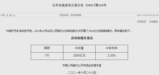 10月28日,中国央行今日开展2000亿元逆回购操作,因今日有1000亿元逆回购到期,当日实现净投放1000亿元。