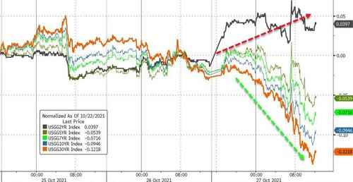 | 原标题:19个月高位VS两周新低!美债收益率曲线急剧趋平 意味着什么? 财联社(上海,编辑 潇湘)讯,近几周来,美国债券市场最受瞩目的焦点,无疑是美债收益率曲线的变动。而在隔夜,收益率曲线趋平的势头似乎再度添上了一把火:2年期美债收益率继续势如破竹般地创下了19个月新高,而更为中长期的债券收益率则普遍回落,指标10年期美债收益率在周三创下了两周新低,30年期美债收益率更是跌破了2%关口! 行情数据显示,美国2年期国债收益率周三再度大涨6.09个基点,尾盘报0.511%,为2020年3月以来最高。 ![]() 2年期美债收益率的升势在当天加拿大央行利率决议后被彻底引爆。加拿大央行周三宣布结束其债券购买刺激计划,并将未来的潜在加息时机提前,因担心供应中断会推高通胀。受此鹰派立场影响,加拿大2年期国债收益率隔夜也一举创下了去年3月以来的新高,并带动了近邻美国短债收益率的上涨。 不过,与过去几日的债市整体基调相似的是,更为中长期的美债收益率却并未追随2年期美债收益率的升势。截止周三纽约时段尾盘,5年期美债收益率下跌2.54个基点报1.156%,10年期美债收益率下跌6.79个基点报1.545%,30年期美债收益率下跌8.86个基点报1.954%。 从时间跨度看,10年期美债收益率隔夜跌至了两周来的最低;30年期美债收益率则跌至了五周来的最低,同时近1个月来首度跌破了2%关口。 ![]() 有分析人士表示,周三5年期美债标售结果强劲,增加了债市的整体买盘,在一定程度上推动了较长期美债收益率的走低。此次 标售的得标利率为1.157%,低于投标截止时二级市场的收益率,这表明投资者寻求支付更少的溢价。投标倍数为2.55,过去几次标售的平均水平为2.37。 此外,长期美债收益率的大幅回落,一定程度上也受到了月末养老基金调仓和海外债市的影响。 英国债务管理办公室周三对本财年英国国债发行计划的下调幅度超过了预期。根据一份声明,英国债务管理办公室将在本财年末发行1948亿英镑(2680亿美元)国债,低于4月预测的2526亿英镑。英国30年期国债收益率在声明公布后重挫16个基点至1.16%,创下2020年3月以来的最大日跌幅。 美债收益率曲线趋平意味着什么? 目前,随着长短端美债收益率的此消彼长,2年/10年期美债收益率差在周三已收窄至了103个基点,为8月末以来最窄。5年/30年期美债收益率差更是一度收窄至80个基点以内,为2020年3月以来最窄。 ![]() 尽管隔夜美债收益率曲线的大幅趋平,在一定程度上有着海外市场的外因推动,但依然反映出债券市场当前在美联储加息和经济增长可能放缓预期叠加下的担忧情绪。 美联储将在下周召开政策会议,市场目前的焦点已从消化可能缩减资产购买规模,转向消化自2018年12月以来首次加息的时机。联邦基金利率期货市场周二已经预计美联储明年6月加息的可能性为70%。 安本资产管理投资董事James Athey表示,“总的来说,投资者将得面对央行变得鹰派很多,出手应对成本推动下通胀及通胀预期大幅上升的前景,央行点了火又往上浇了油。现在他们需要应对这个局面。” 然而,一旦各国央行在经济尚未完全走出疫情阴霾的背景下,就贸然选择加息,无疑将对未来的经济增长前景带来拖累,如果在可能被证实是短暂的通胀高企的背景下过早收紧政策,或会犯下政策错误,甚至最终造成不得不再度陷入降息的风险,这或许便是长债收益率难以肆无忌惮地跟随短债收益率走高的原因之一。 展望日内,美国商务部将公布美国第三季度GDP初值数据,值得投资者密切留意。媒体调查的经济学家目前已预计美国第三季度GDP初值可能显示复苏势头降温,预估中值为第三季度实际GDP年化季率增长2.6%。对经济总量贡献最大的个人消费增速料大幅放缓至0.9%,低于第二季度12%的增速。 海量资讯、精准解读,尽在新浪财经APP 责任编辑:郭建 |