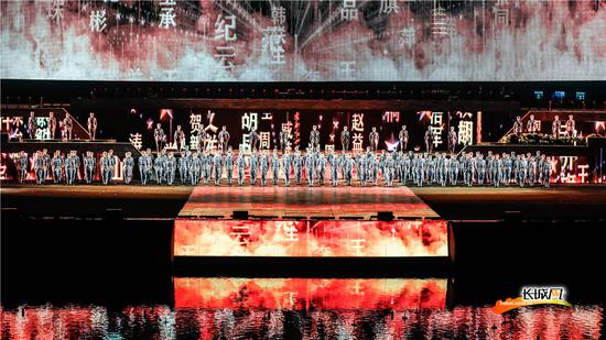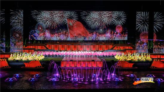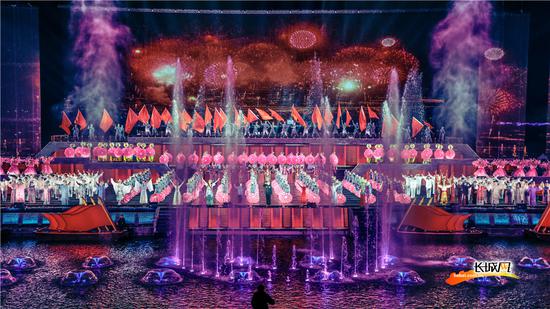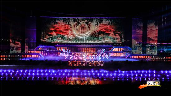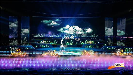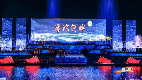 ![]() 10月14日晚,水上实景演出《滹沱河畔》在正定国际会展中心南侧滹沱河明曦湖面上精彩上演。长城新媒体记者 刘潇 摄 |