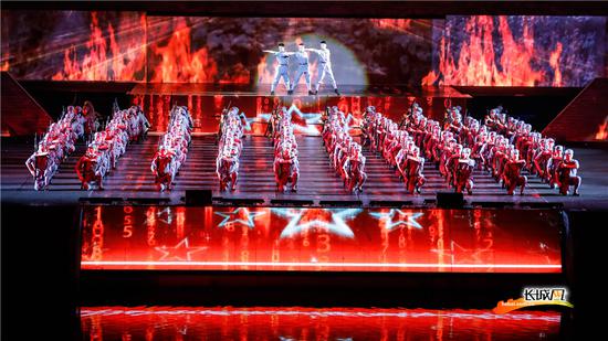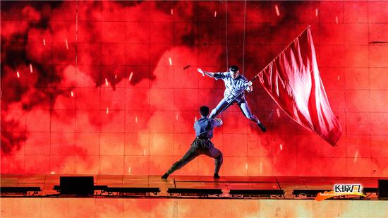 10月14日晚,水上实景演出《滹沱河畔》在正定国际会展中心南侧滹沱河明曦湖面上精彩上演。长城新媒体记者 刘潇 摄