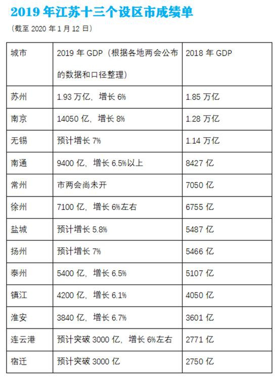 ![]() 岁末年初,江苏各地两会在陆续进行的同时,也都各自晒出了2019年的成绩单。 澎湃新闻注意到,“经济大省”江苏预计不再有GDP在3000亿元以下的设区市,排名榜尾的连云港和宿迁,2019年GDP均预计突破3000亿元。 江苏经济第一强市,也是国内“最强地级市”的苏州,2019年GDP预计为1.93万亿,并喊出了进军“两万亿俱乐部”的响亮口号。 1月3日举行的苏州开放再出发大会上,江苏省委常委、苏州市委书记蓝绍敏表示,2020年苏州GDP要突破两万亿大关,“向最极限目标冲刺,是苏州改革发展永恒的主题”。 江苏省内经济总量排名第二的南京,则在向1.5万亿靠拢。1月9日上午,南京市第十六届人民代表大会第三次会议开幕,南京市代市长韩立明所作政府工作报告透露,预计全年完成地区生产总值14050亿元,增幅连续11个季度保持8%及以上,位居东部地区GDP过万亿元城市和全省首位。 南通2019年的GDP预计为9400亿。其政府工作报告中也明确提出,2020年要“确保经济总量过万亿”。 作为江苏“新增长极”,也是上海大都市圈重要成员城市,南通或将成为苏州、南京和无锡之后,江苏的第四座“万亿俱乐部”城市。 值得一提的是,江苏十三个设区市将实现GDP全员位居3000亿元以上,成为国内唯一做到这一点的省份。 澎湃新闻记者从官方渠道获悉,上一年度GDP还在3000亿以下的连云港和宿迁,今年在各自的市两会上,双双宣布“预计突破3000亿元”。 |